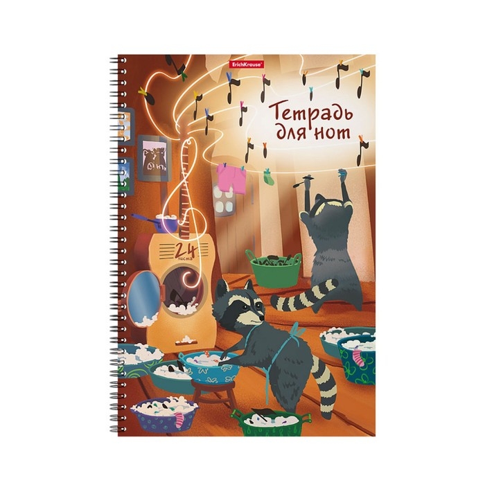 Тетрадь для нот А4 на спирали, 24 листа, ErichKrause "Ноты-еноты", вертикальная ориентация, обложка мелованный картон, блок офсет 100% белизна, с принтом