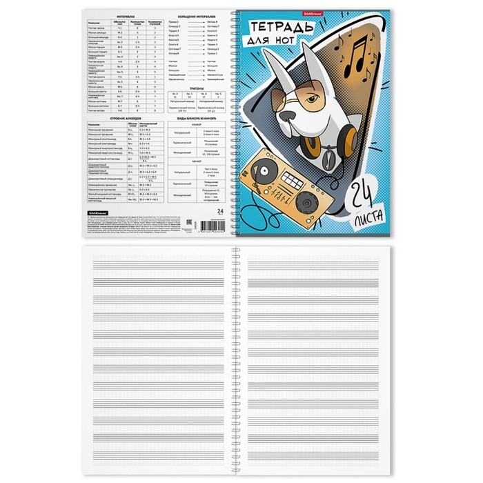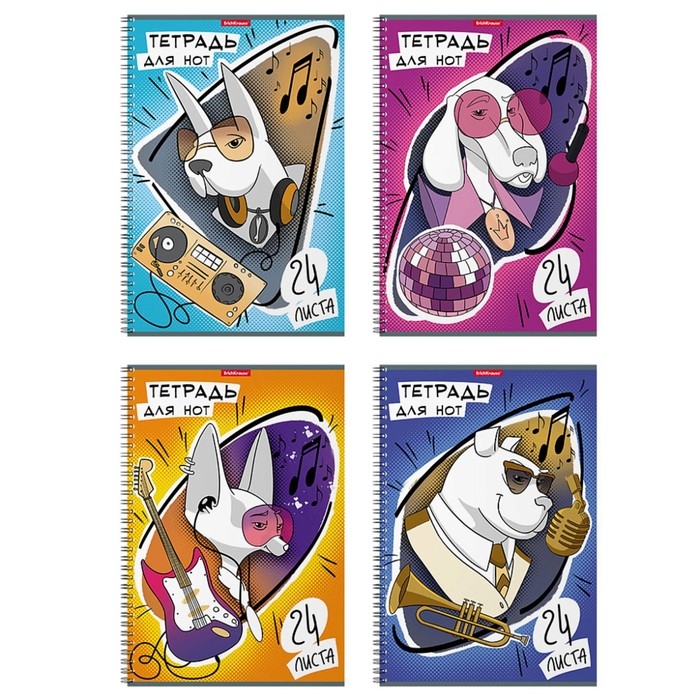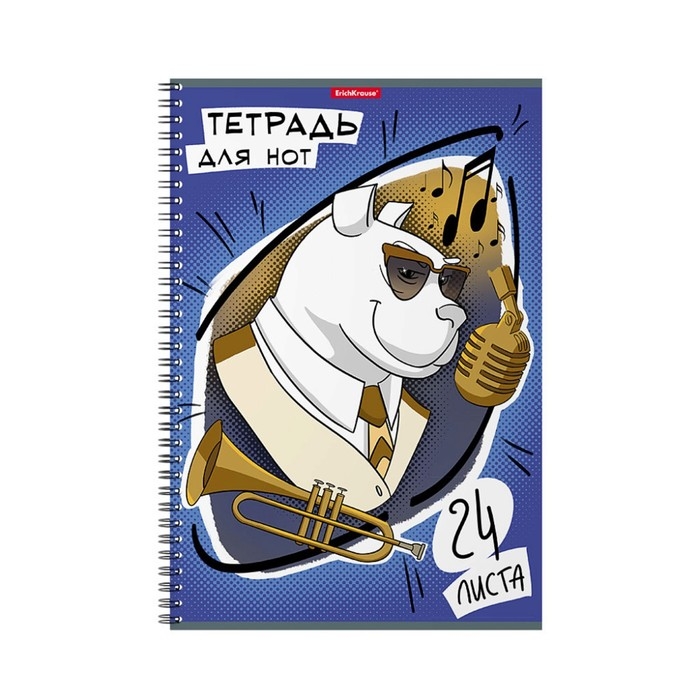 Тетрадь для нот А4 на спирали, 24 листа, ErichKrause POP-Dogs, вертикальная ориентация, пластиковая обложка, блок офсет 100% белизна, МИКС (1 вид в спайке)