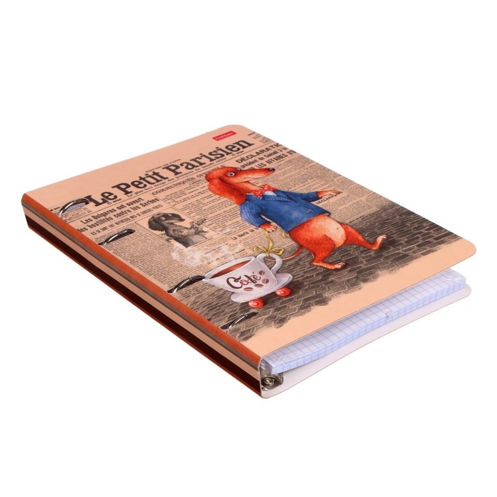 Тетрадь на 4-х кольцах А5, 80 листов в клетку "ТаксаLIFE", обложка слим-картон, глянцевая ламинация, блок офсет