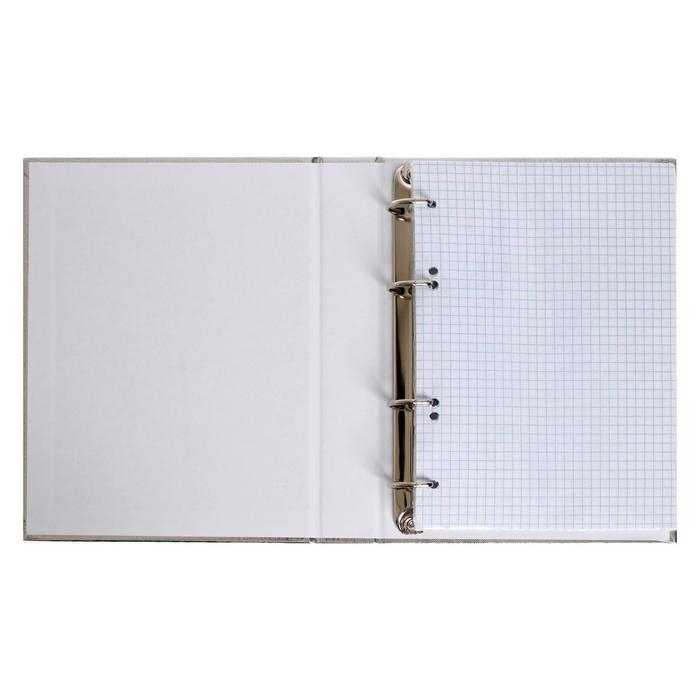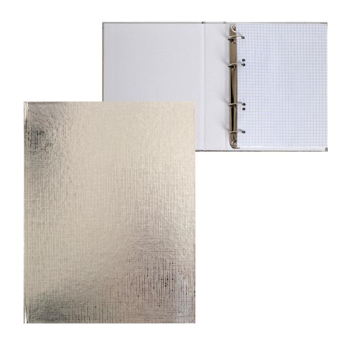 Тетрадь на 4 кольцах А5, 120 листов в клетку "Серебро. METALLIC", обложка бумвинил, блок офсет