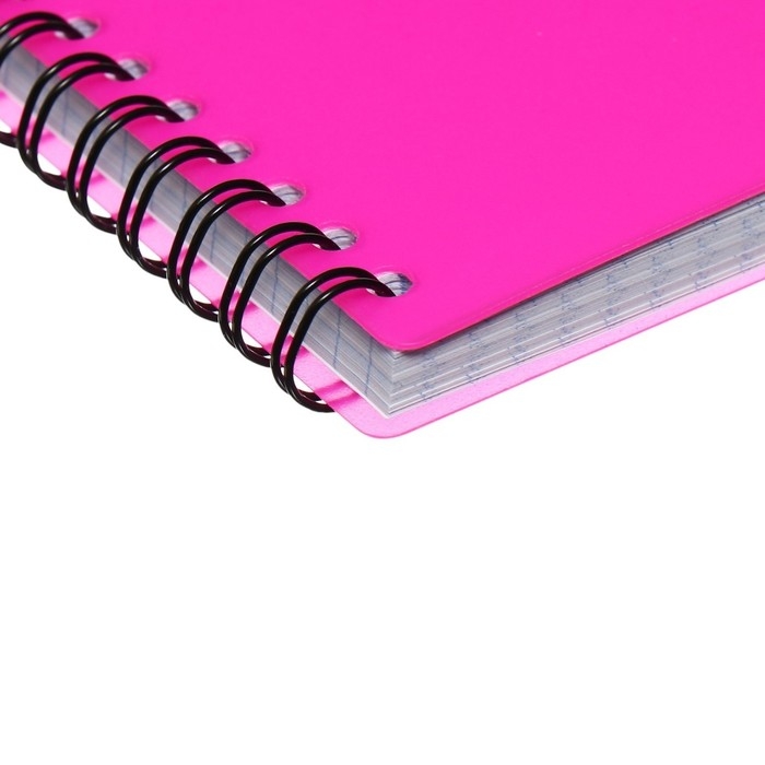 Тетрадь общая формата А5 (148x210 мм). Обложка из высококачественного износостойкого пластика с фактурой "песок". В блоке 80 листов в клетку. Бумага офсетная плотностью 60 г/м2. Цвет линовки - синий. Скругленные уголки обложки. Тип скрепления - спираль. Тетради упакованы в термоусадочную пленку по 4 штуки.
