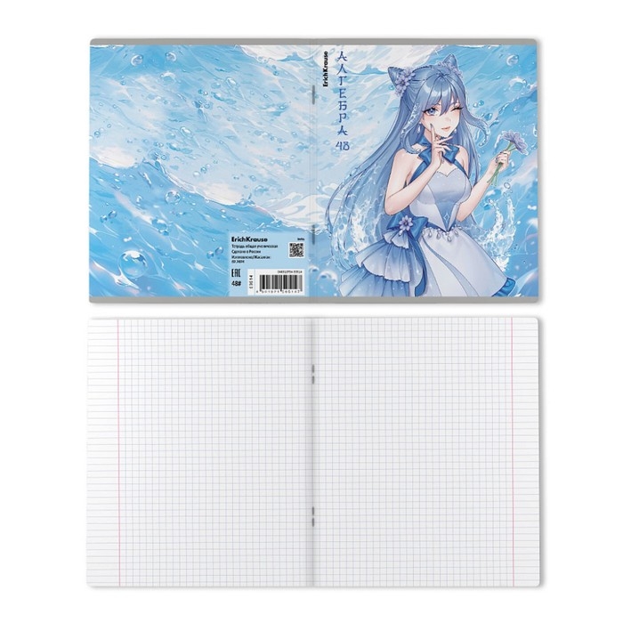 Тетрадь предметная АЛГЕБРА, 48 листов в клетку, ErichKrause Manga, обложка мелованный картон, твин-лак, блок офсет 100% белизна, инфо-блок