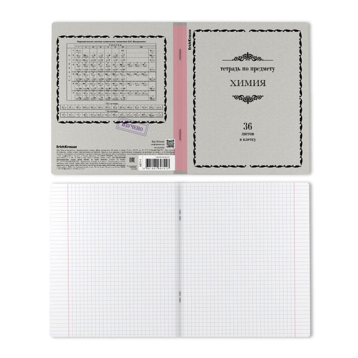 Тетрадь предметная ХИМИЯ, 36 листов в клетку, ErichKrause "Академкнига", обложка мелованный картон, блок офсет 100% белизна, инфо-блок