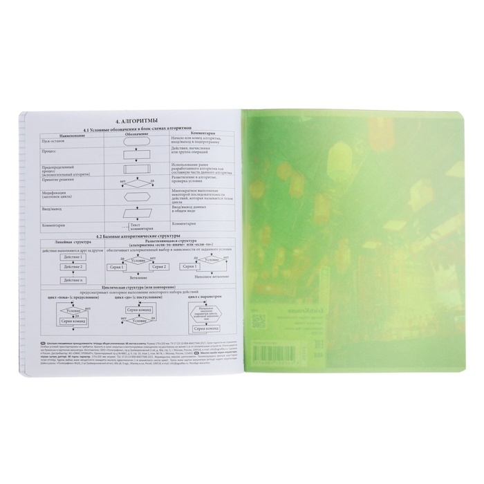 Тетрадь предметная формата А5+ (170х203 мм). Обложка из высококачественного мелованного картона плотностью 190 г/м2. Отделка - твин-лак. В блоке 48 листов в клетку с полями. Бумага офсетная плотностью 60 г/м2. Белизна бумаги - 100%. Цвет линовки - синий. Скругленные уголки обложки и блока. Тип скрепления - скоба. Имеет дополнительный лист с инфо-блоком с кратким изложением школьной программы. Тетради упакованы в термоусадочную плёнку по 5 штук.