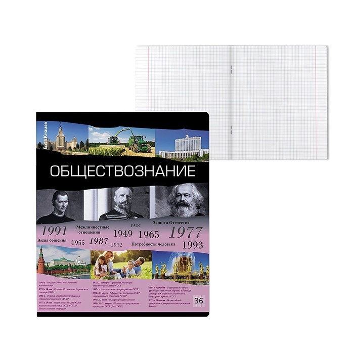 Тетрадь предметная ОБЩЕСТВОЗНАНИЕ, 36 листов в клетку, ErichKrause Timeline, обложка мелованный картон, блок офсет 100% белизна, инфо-блок