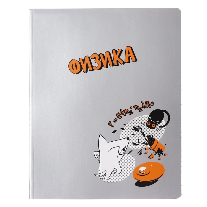 Тетрадь предметная "Пёс и Кот" 48 листов в клетку "Физика", обложка мелованный картон, металлизированная краска, ВД-лак, блок офсет
