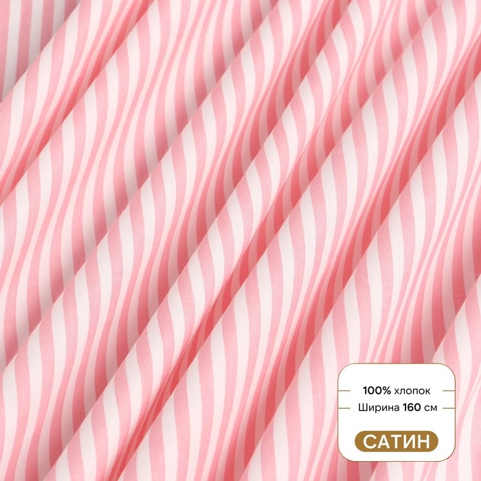 Ткань напечатанная "Розовая полоска" ш.160 см, сатин, 100% хлопок