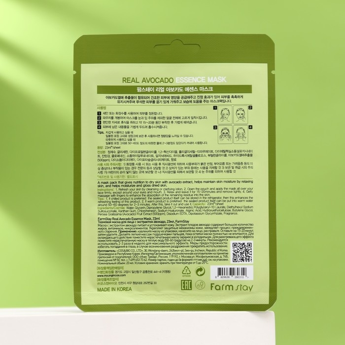 Тканевая маска для лица FarmStay, с экстрактом авокадо, 23 мл