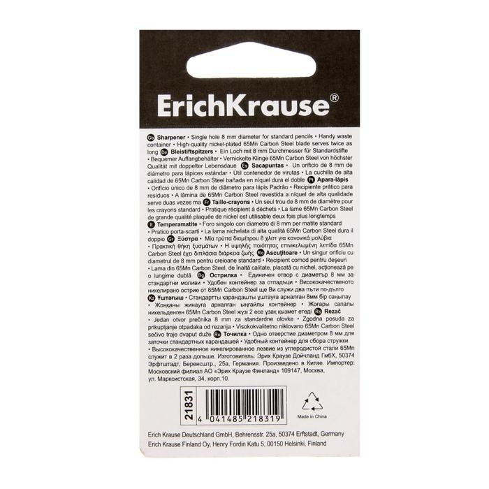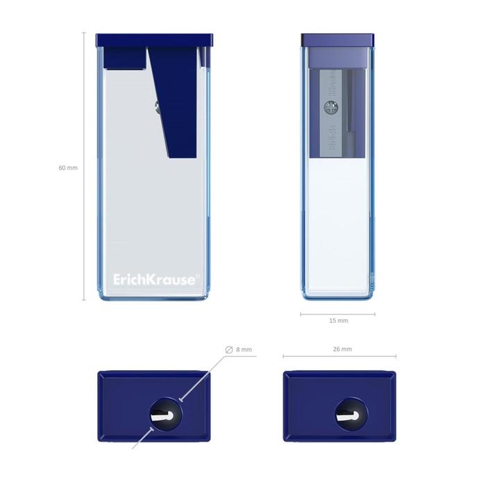 Точилка 1 отверстие Erich Krause SMART & SHARP, с контейнером, отверстие диаметром 8 мм, микс