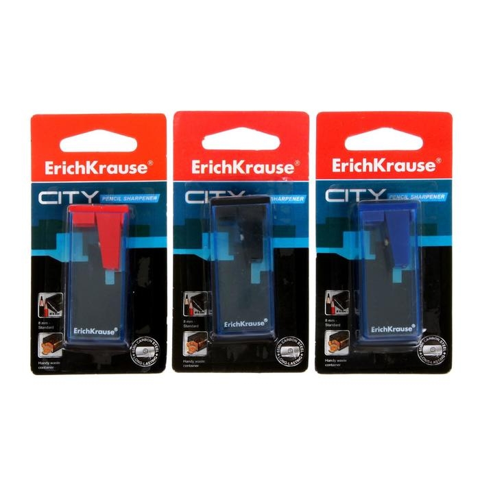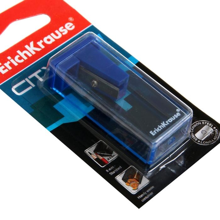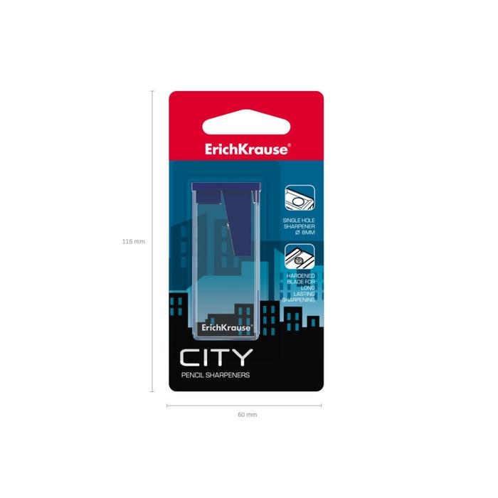 Точилка 1 отверстие ErichKrause City, с контейнером, отверстие диаметром 8 мм, в блистере, микс