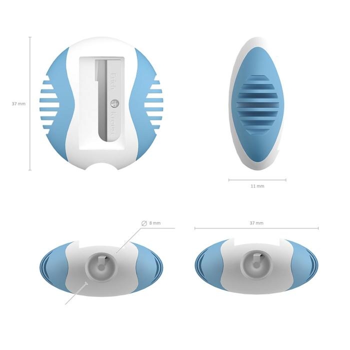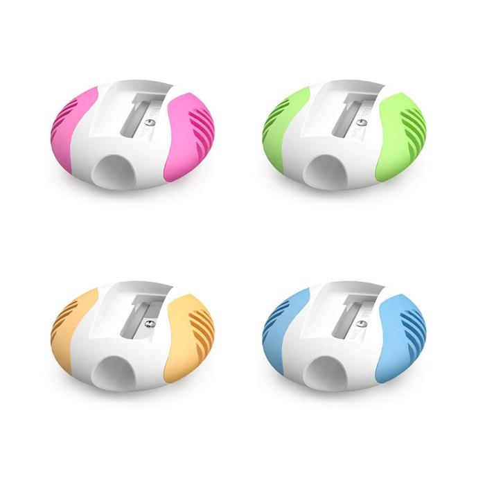 Пластиковая точилка с цветными, противоскользящими резиновыми вставками.