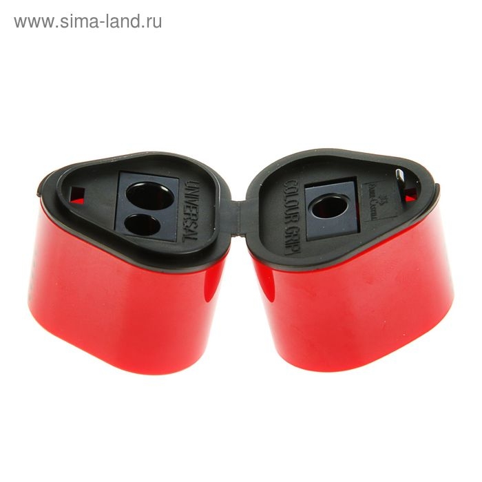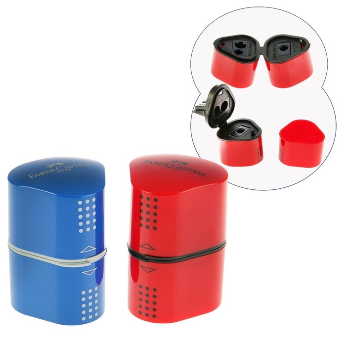 Точилка 3 отверстия с контейнером Faber-Castell TRIO Grip 2001 для стандартных и трёхгранных карандашей, цвет красный/синий