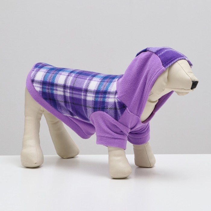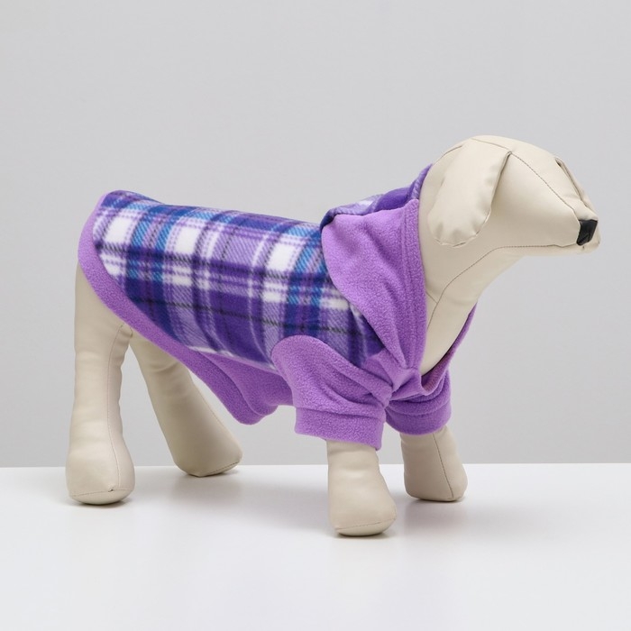 Толстовка с капюшоном для собак, размер S, сиреневая клетка (ДС 23, ОШ 26, ОШ 32 см)