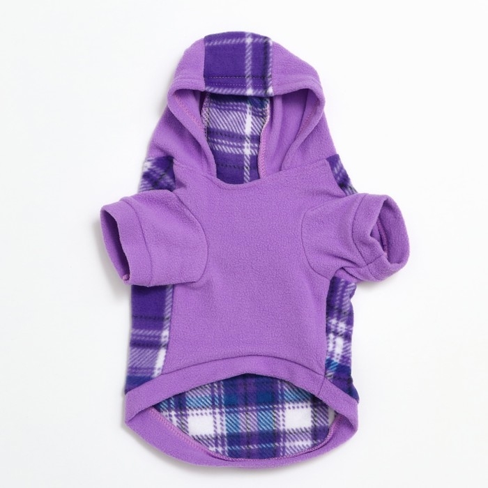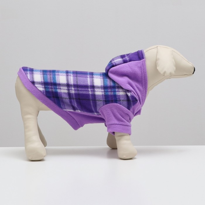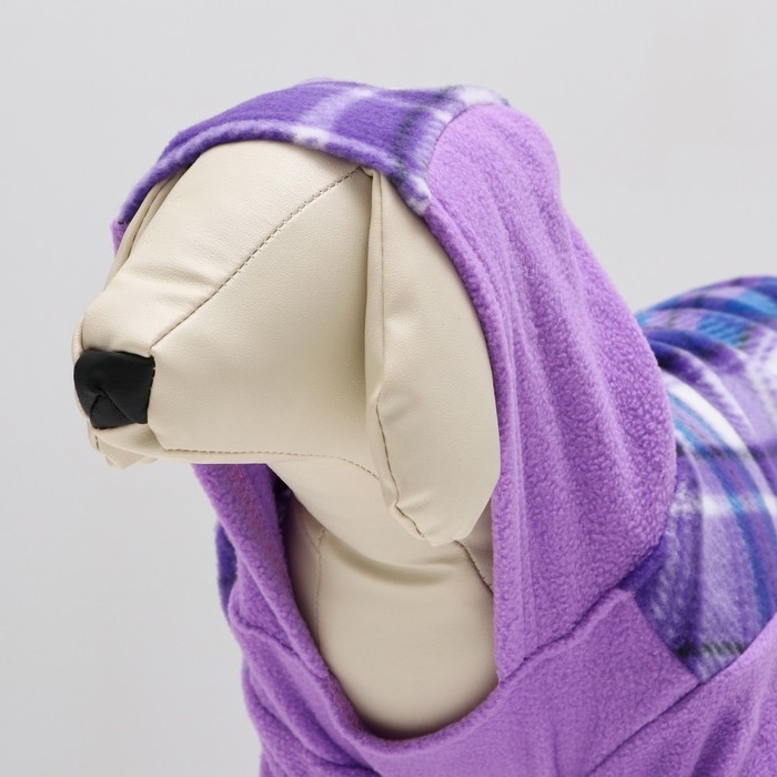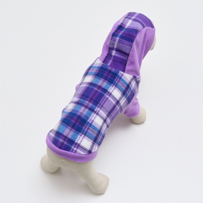 Толстовка с капюшоном для собак, размер XL, сиреневая клетка (ДС 36, ОШ 42, ОШ 48 см)