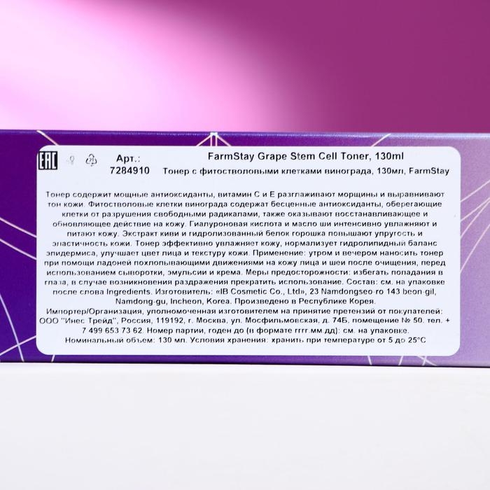Тонер для лица FarmStay, с фито-стволовыми клетками винограда, 130 мл