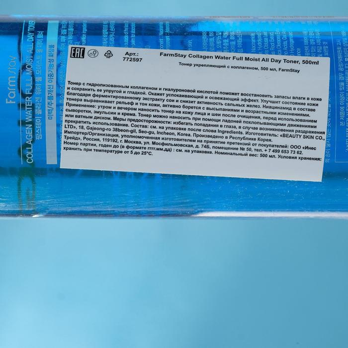 Тонер для лица FarmStay, укрепляющий, с коллагеном, 500 мл