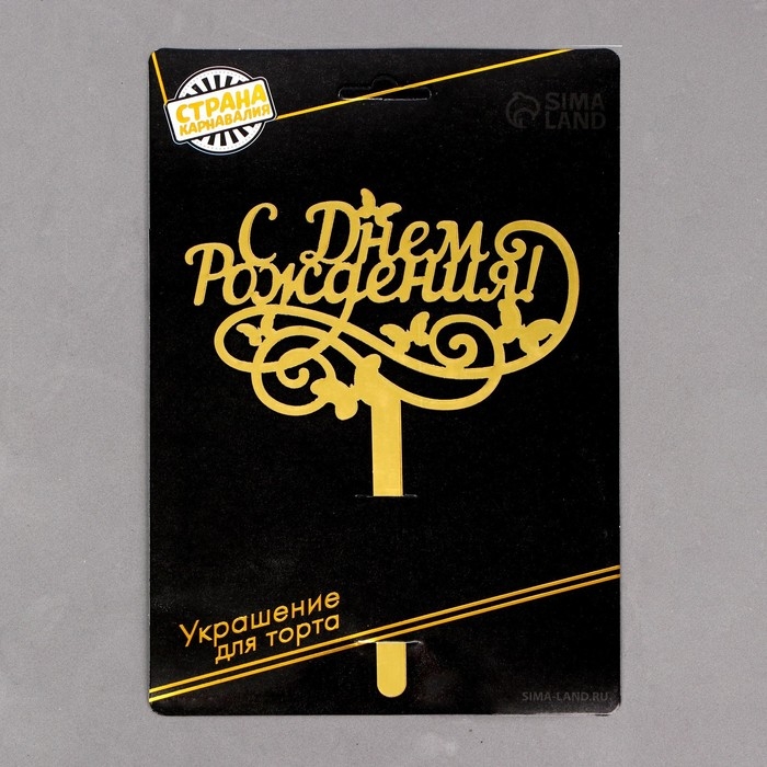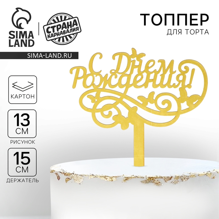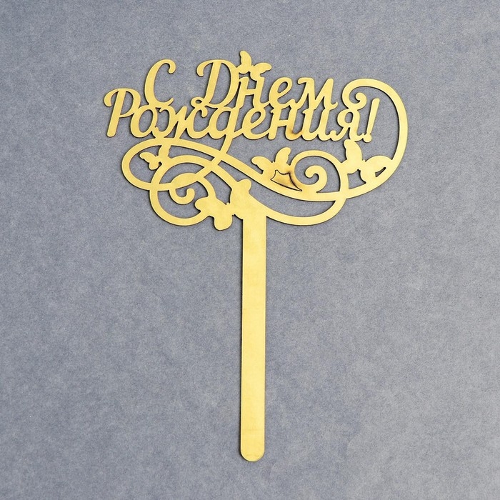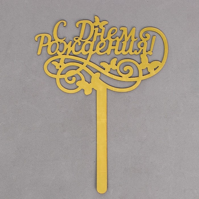 Топпер для торта «С Днём Рождения», 15×13,5 см, цвет золотой