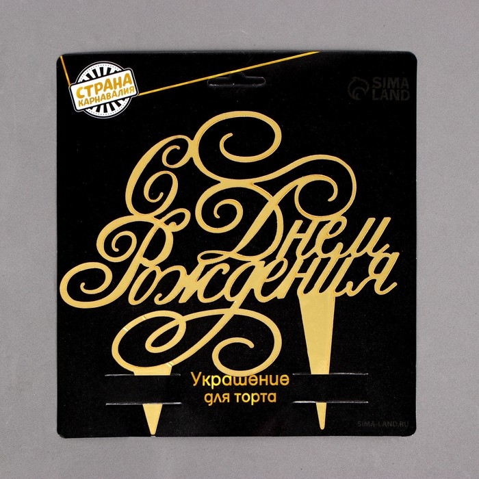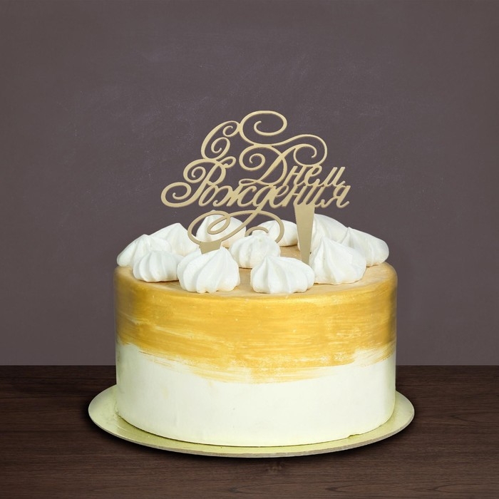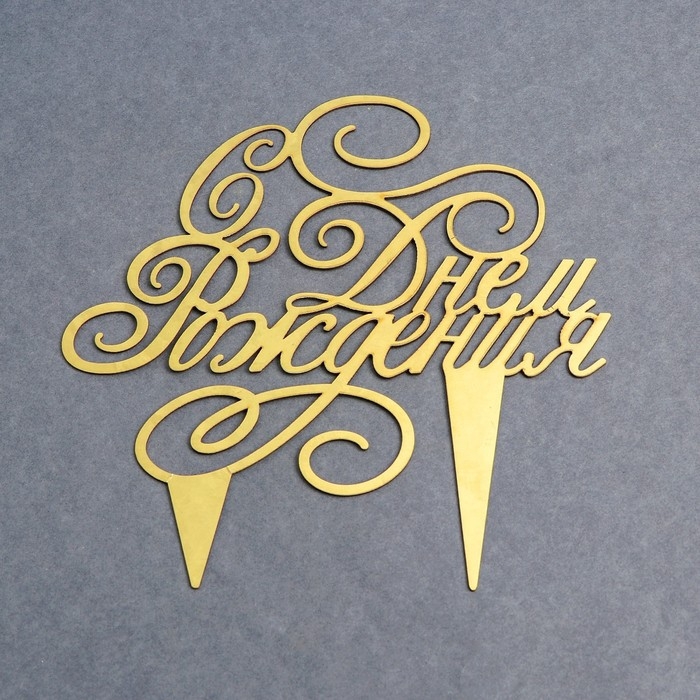 Топпер для торта «С Днём Рождения», 15×13,5 см, цвет золотой