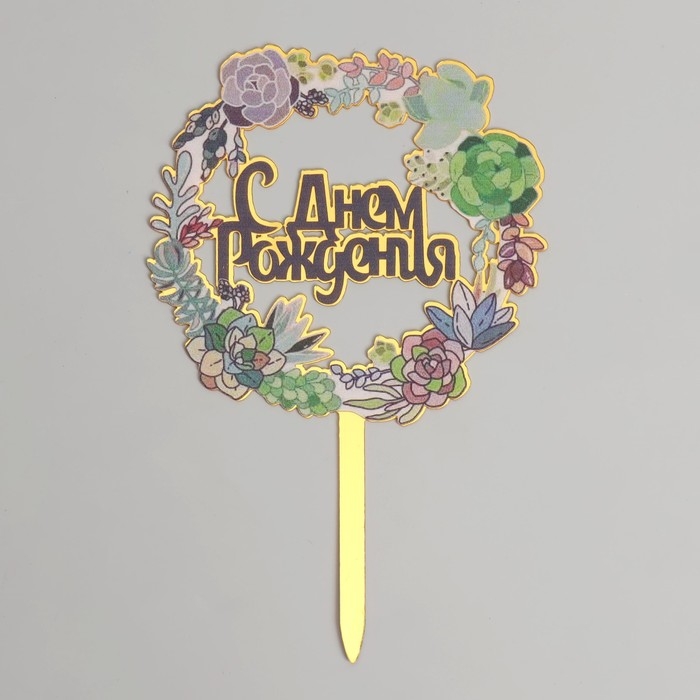 Топпер для торта «С Днём Рождения», 15×13,5 см, цвет золотой