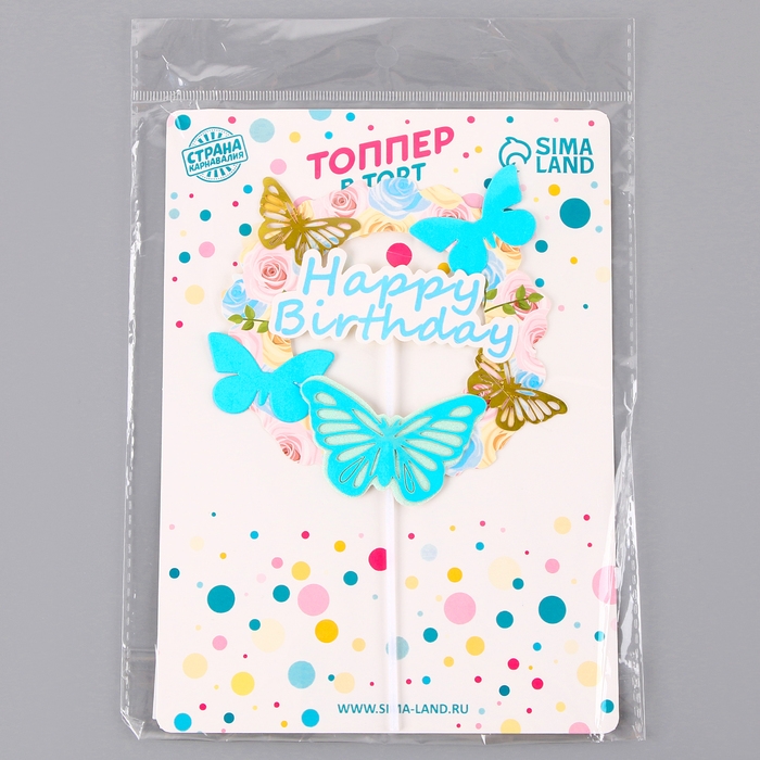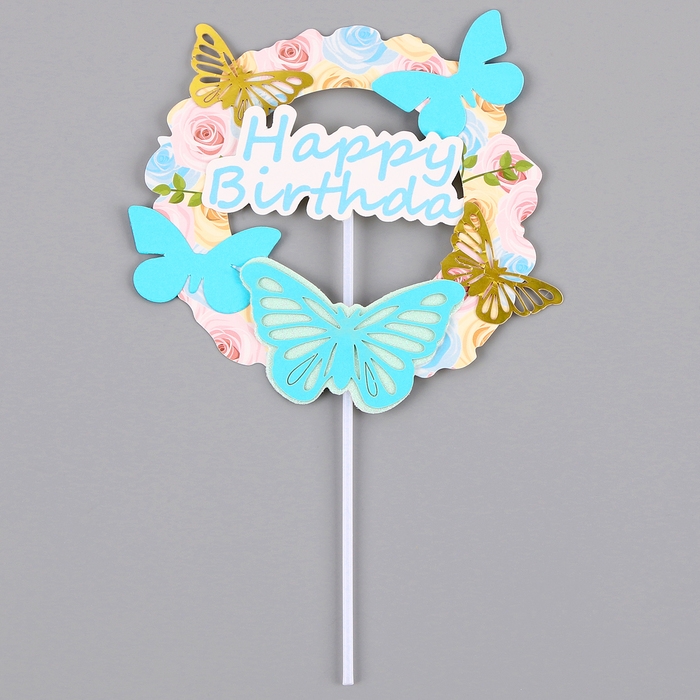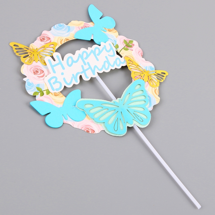 Топпер «С днём рождения» с бабочками, цвет голубой