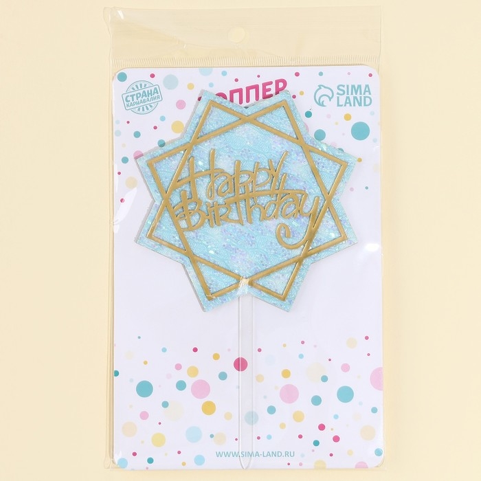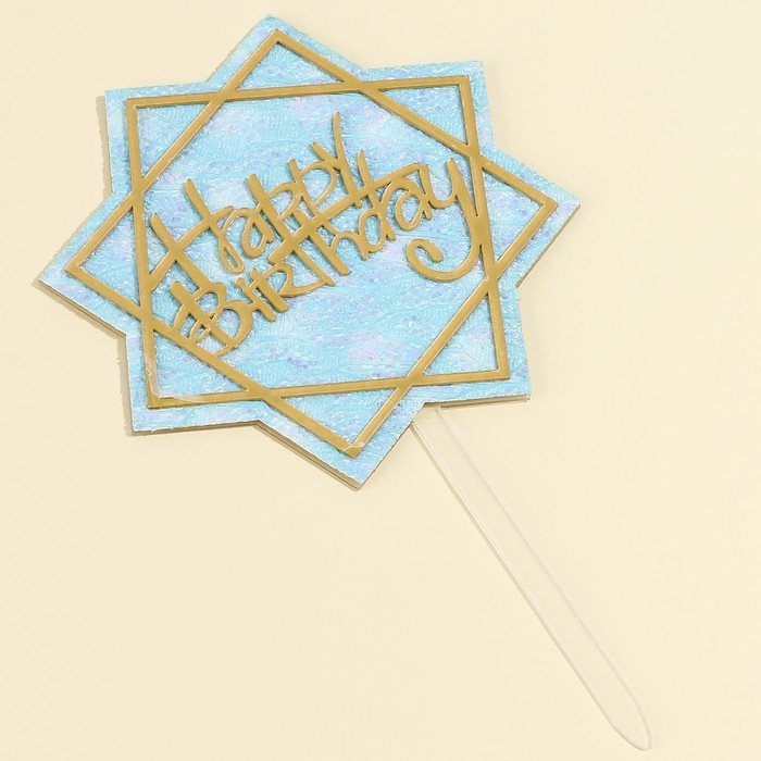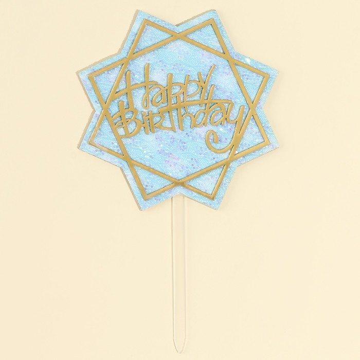 Топпер «С днём рождения» с блёстками, цвет голубой