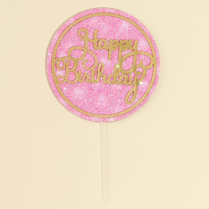 Топпер «С днём рождения» с блёстками, цвет розовый