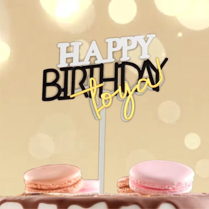 Топпер для торта «Happy Birthday», 16,5×15 см, цвет чёрный