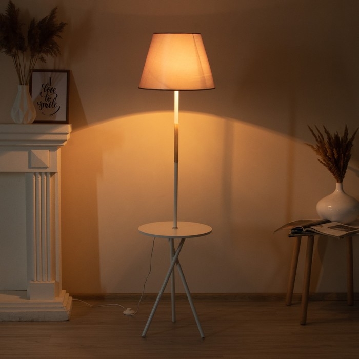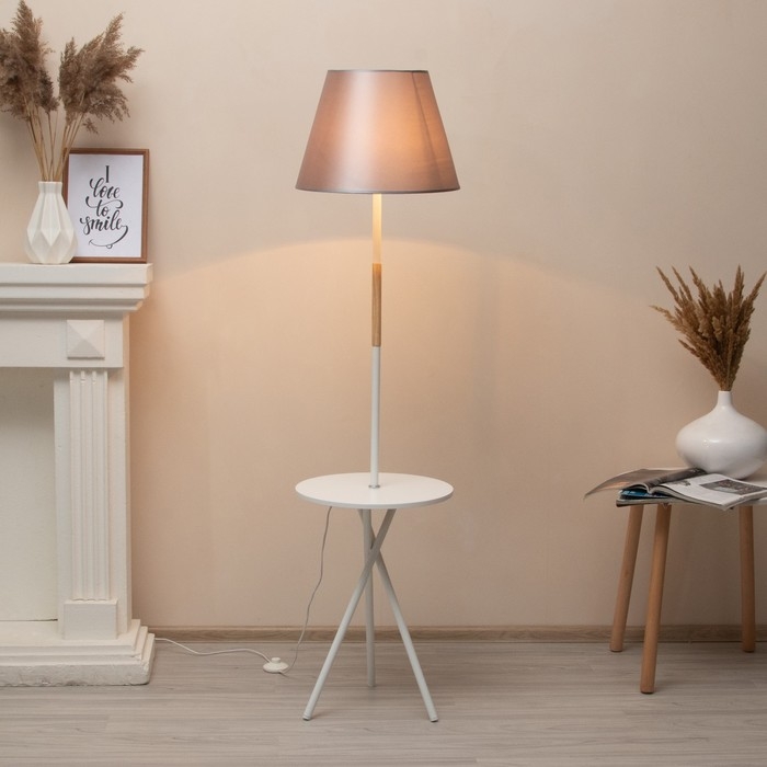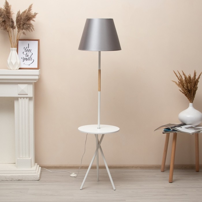 Торшер "Патрисиа" 1х15Вт Е27 со столиком белый/серый 40х40х157см