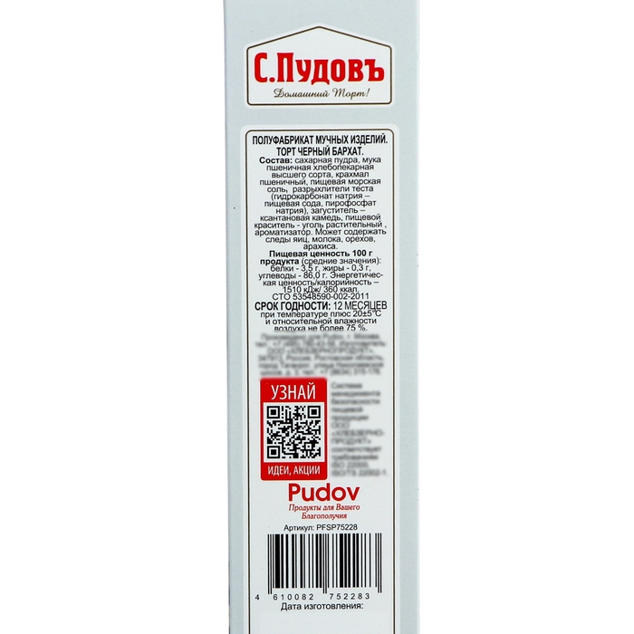 Торт "Черный бархат" С.Пудовъ, 400 г