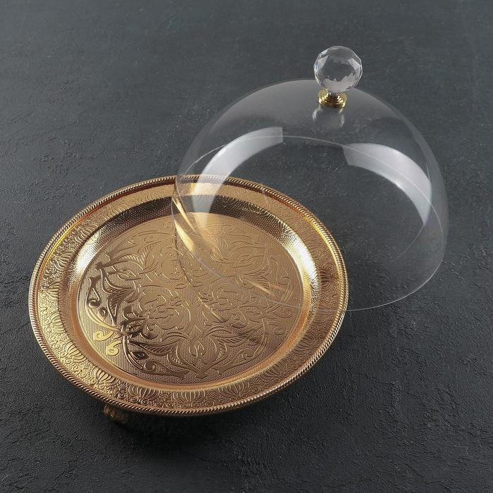 Тортовница с крышкой-клош, 32×21,5 см, (d десерта до 24 см), цвет металла золотой