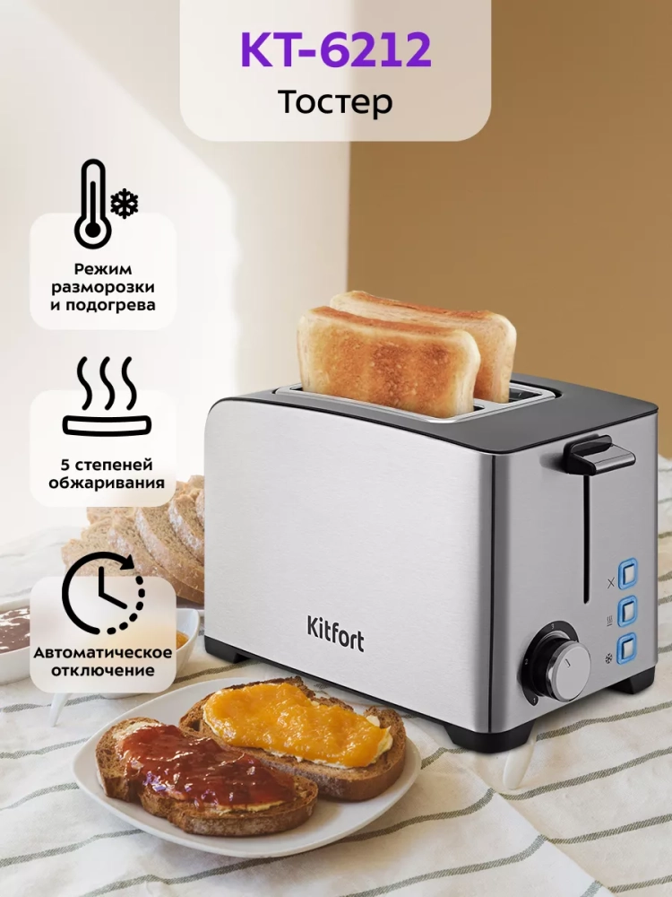 Электрический тостер Kitfort КТ-6212 создан для тех, кто любит полакомиться ароматным и хрустящим горячим поджаренным хлебом. Особый вкус и цвет корочки тостов получаются такими благодаря карамелизации сахара, содержащегося в тесте, при инфракрасном нагреве в процессе приготовления.