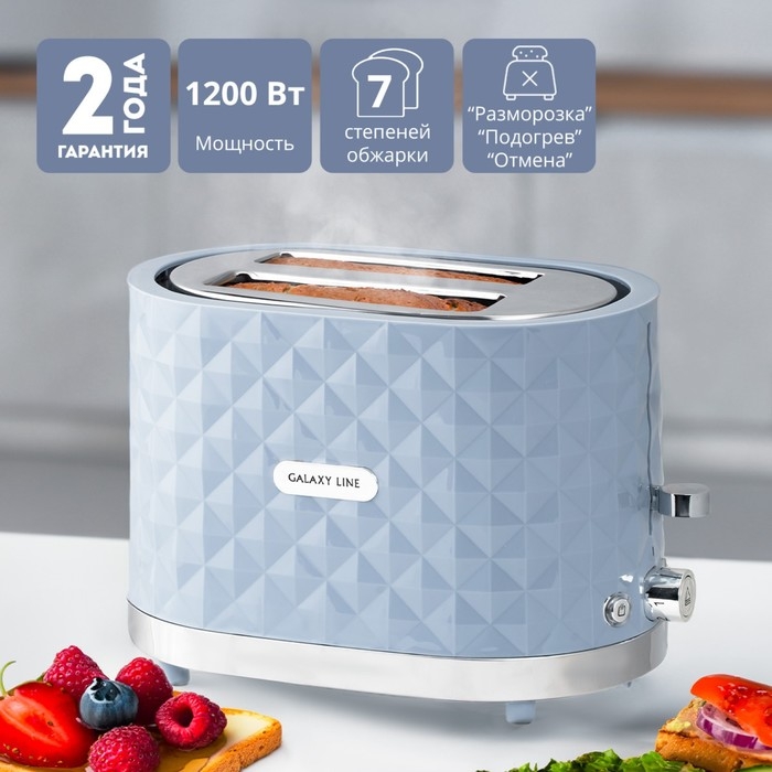 Тостер Galaxy GL 2912, 1200 Вт, 7 режимов прожарки, 2 тоста, серо-голубой