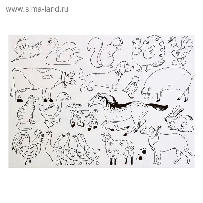 Пластиковый шаблон для рисования – ФЕРМА (мотив “домашние животные”), размеры 265 x 187 мм, толщина 2 мм; упакован в полиэтиленовый пакет с вешалкой. Прозрачный синий цвет. Шаблон используется для копирования фильма на бумагу.