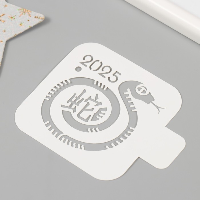 Трафарет новогодний пластиковый "Змея с иероглифом", размер 9х9 см
