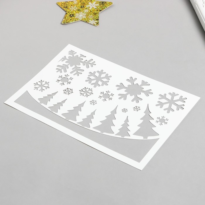 Трафарет пластиковый "Ёлочки, снежинки" 24х16 см