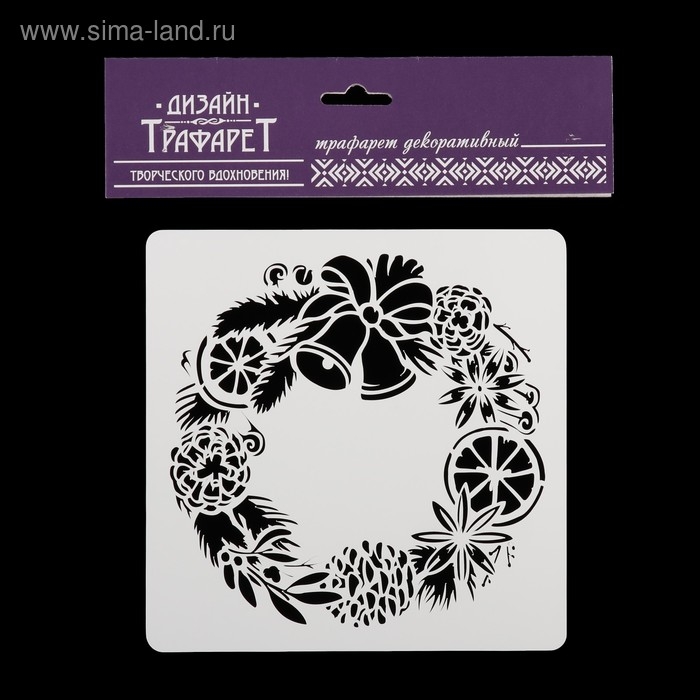 Трафарет пластиковый квадратный "Рождественский венок" 15х15 см