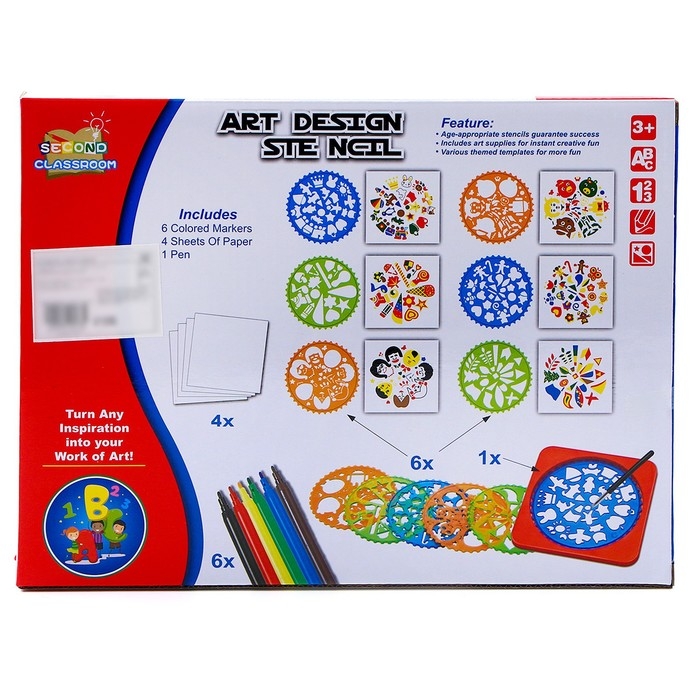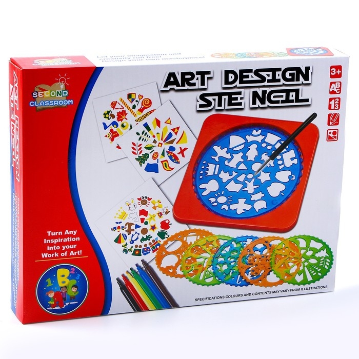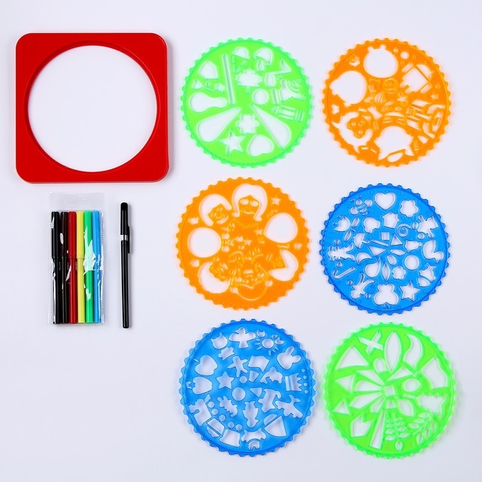 Трафареты «Фантазия», набор 6 шт., 6 шт. фломастеров, ручка, бумага