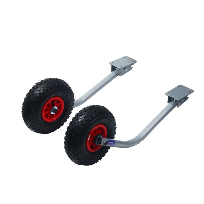 Транцевые колёса ТР трансформеры предназначены для лодок с надувным дном низкого давления (НДНД). Они имеют откидной механизм, который позволяет поднимать колёса вверх или опускать вниз. Стойка крепится на кронштейны к жёсткому транцу лодки. При движении по воде стойка поднимается вверх на 180 градусов. Высота от оси колеса до края крепления составляет 56 см.