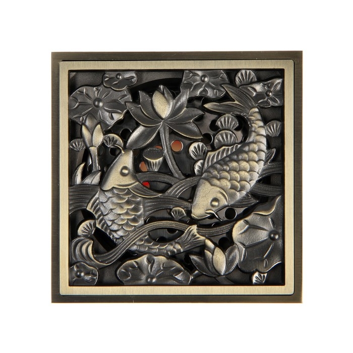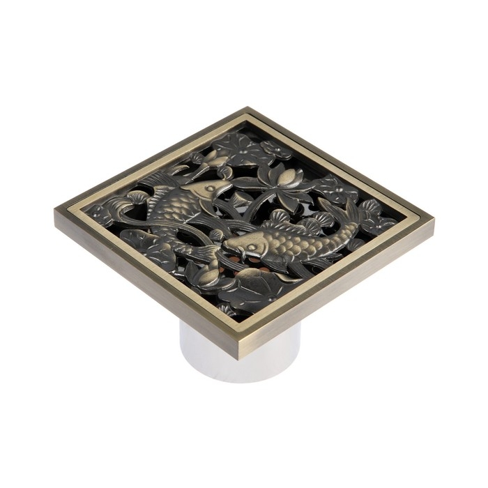 Трап AFLORN AF10810C-10, d=50мм, вертикальный, 100х100мм, латунь, с рисунком,античная бронза