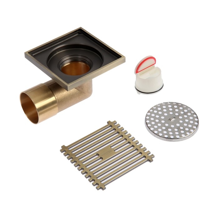 Трап AFLORN AF20610C-10, d=50 мм, горизонтальный, 100х100 мм, латунь, античная бронза