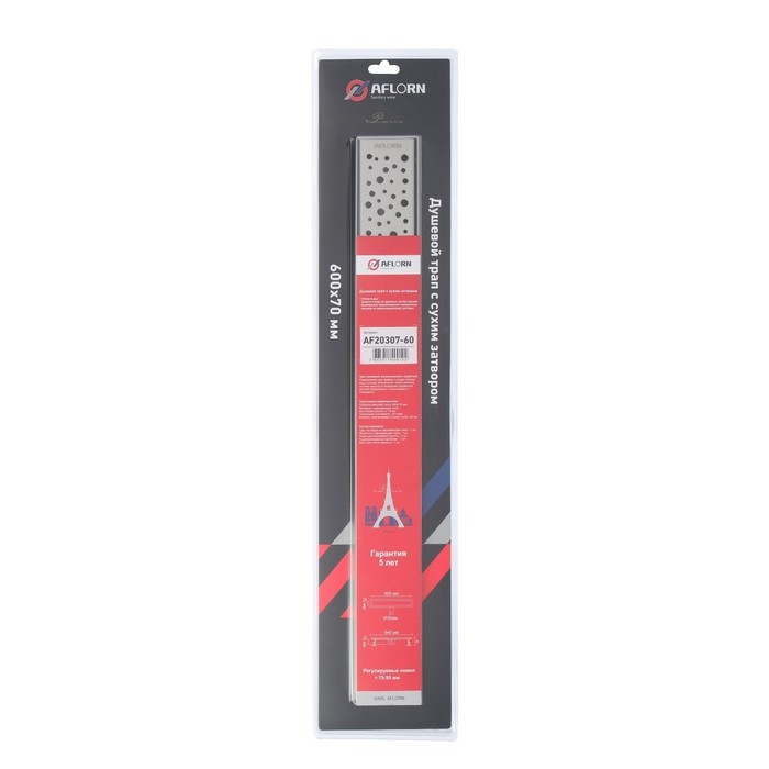 Трап линейный AFLORN AF20307-60, 600х70 мм, c флaнцeм своб. вращения 360°, нерж. сталь