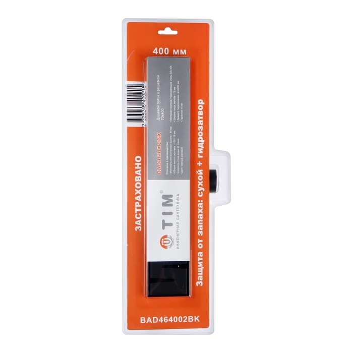 Трап TIM BAD464002BK, 70 х 400 мм, гидро+сухая защита от запаха, черный матовый