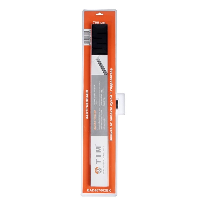 Трап TIM BAD467002BK, 70 х 700 мм, гидро+сухая защита от запаха, черный матовый