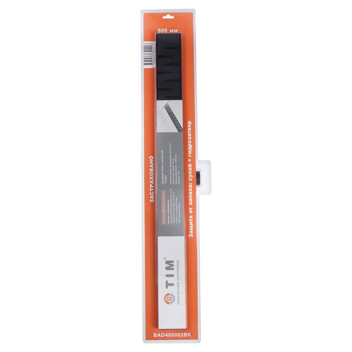 Трап TIM BAD468002BK, 70 х 800 мм, гидро+сухая защита от запаха, черный матовый