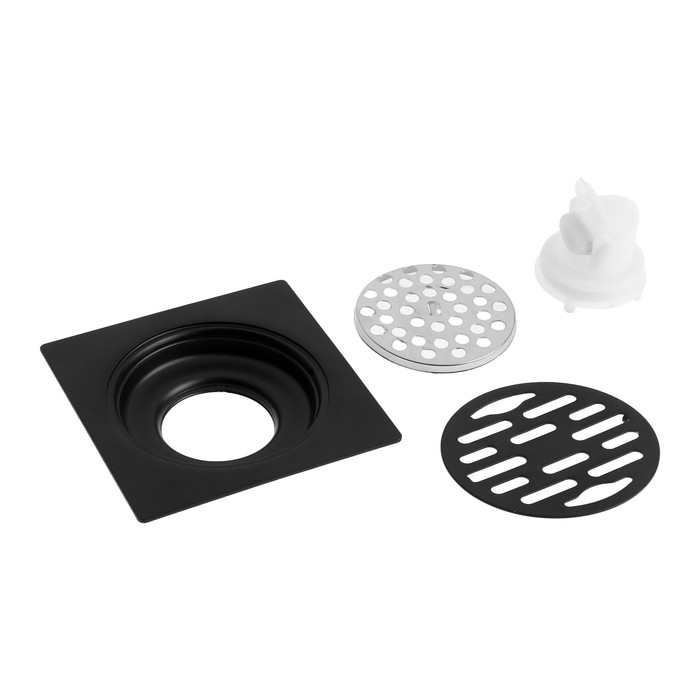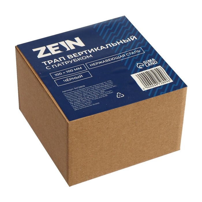 Трап ZEIN, 100х100 мм, вертикальный, с патрубком, нержавеющая сталь, черный