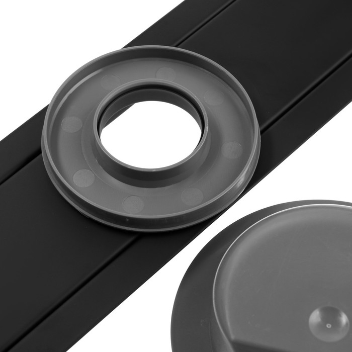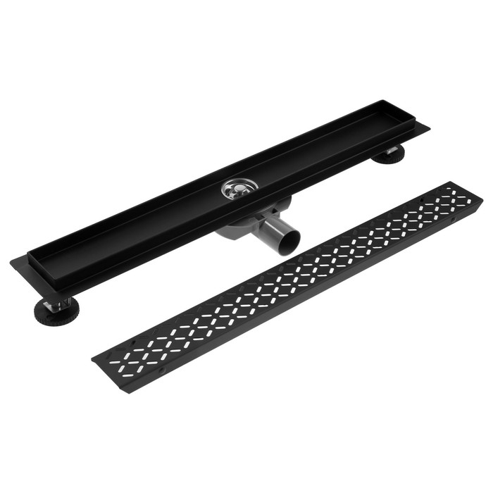 Трап ZEIN engr, c флaнцeм свободного вращ 360°, 7*60 см, d=40/50 мм, нерж сталь, черный