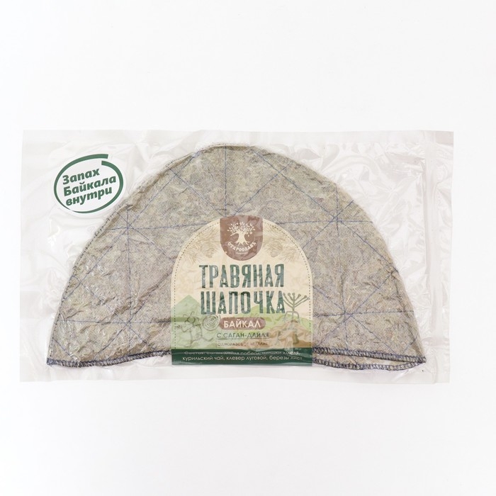 В шапочку Байкал входят побеги уникального растения рододендрон адамса (саган-дайля), который растёт только в бассейне озера Байкал. Неповторимый запах растения сочетается с его выдающимися способностями активизировать жизненные силы организма. Под воздействием горячего пара и воздуха в шапочке образуется отвар, проникающий в кожу головы. Шишки хмеля успокаивают нервную систему, курильский чай и клевер придают отвару неповторимый аромат летней тайги. Березовый лист питает волосы, защищает их от выпадения, стимулирует рост. Травяная шапочка - предмет личной гигиены!