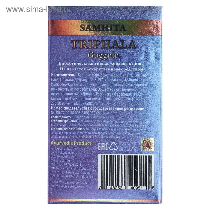 Трифала Гуггул ,Самхита, 60 шт.