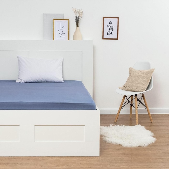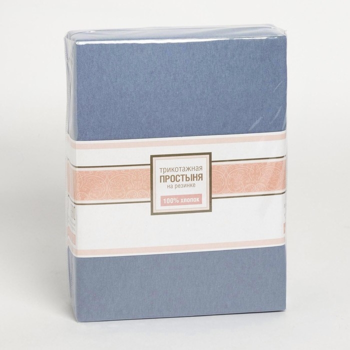 Трикотажная простыня на резинке 140х200х25см, голубой кулирка