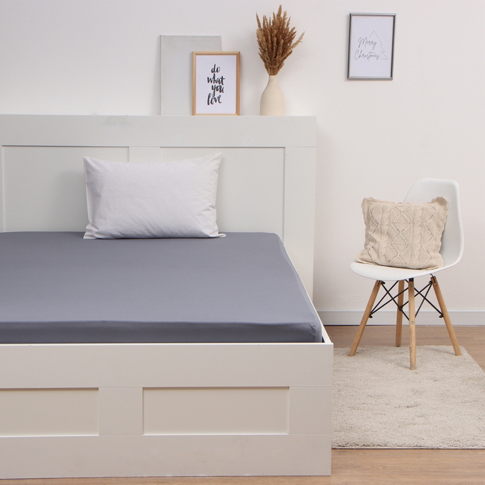 Трикотажная простыня на резинке 160х200х20см, серый, кулирка 120г/м, хл100%